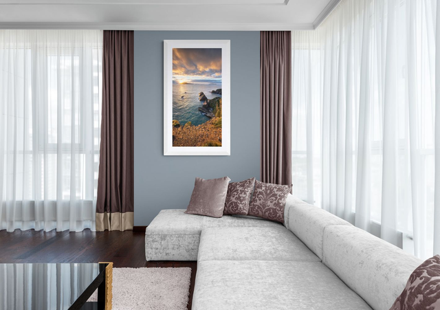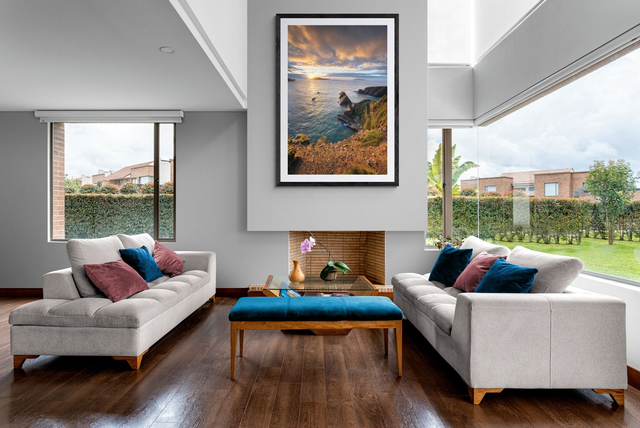 *PLEASE NOTE - The mounted prints consist of a mount that effectively adds an additional 2" to each edge and the framed prints consist a mount and frame that adds an additional 3" to each edge. For example, the total dimensions of a framed 24"x12” print is 30"x18”.